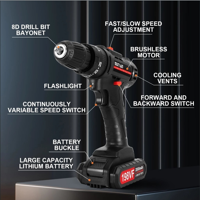 198Vf/298Vf Speed Bor Listrik Mesin Cordless Drill Battery Impact Drill Cordless Bor Baterai Tangan Cordless Murah Bor
