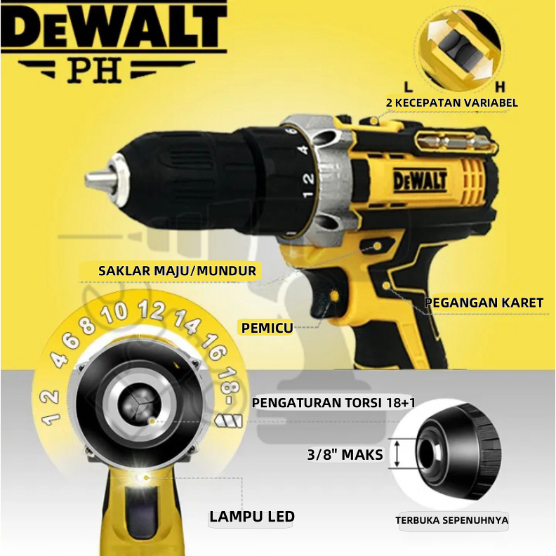Dewalt Mesin Bor Baterai Cordless Drill 10Mm Bor Tangan Bor Cas Murah Komplit Bisa Besi Beton Kayu