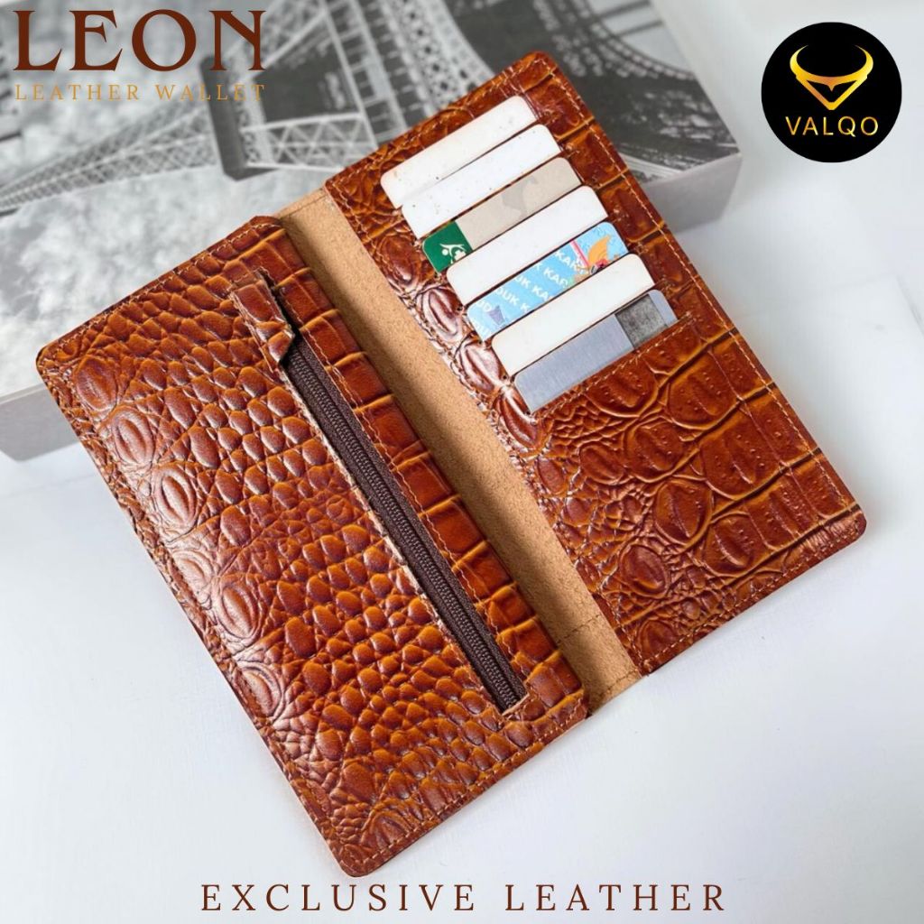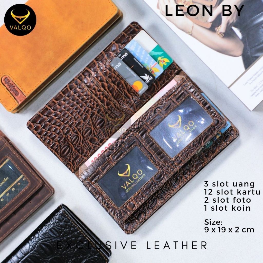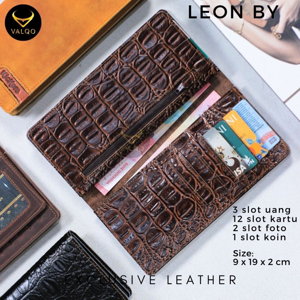 Valqo Leon Dompet Kulit Sapi Panjang Dompet Pria Wanita 12 Kartu 2 Foto