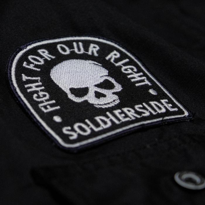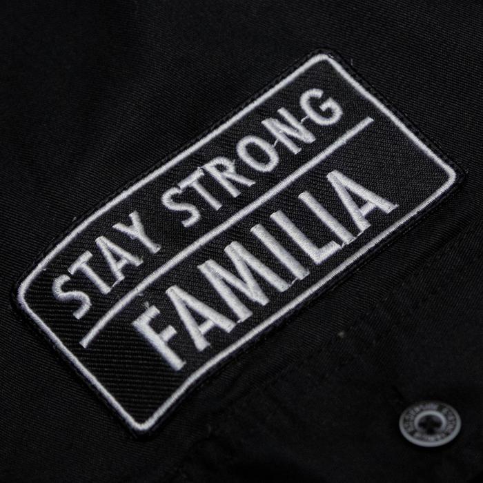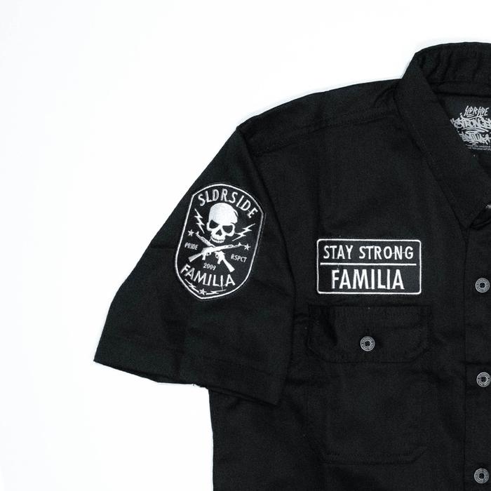 SOLDIERSIDE WORKSHIRT DISTRO LOGO "FAMILIA" HITAM BORDIR RAPI KANCING KEREN WS194 KANTONG SIMPLE - M
