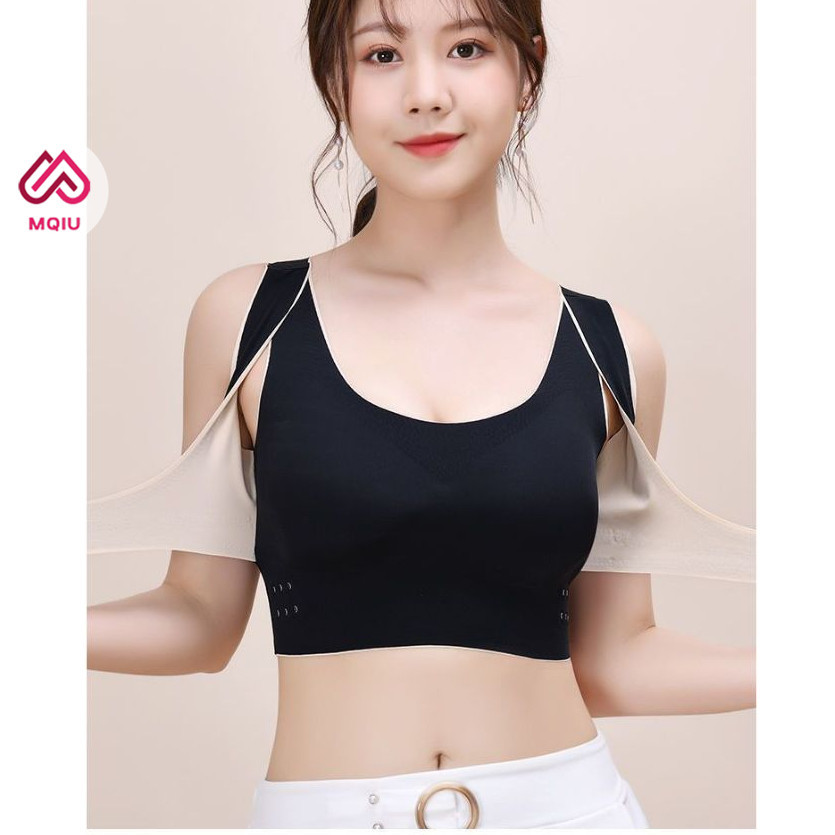 Mqiu - Bh Push Up Bra Seamless Wanita Sport Tanpa Kawat Tanpa Pengait Punggung Tali Silang Bh Olahraga Yoga Jogging