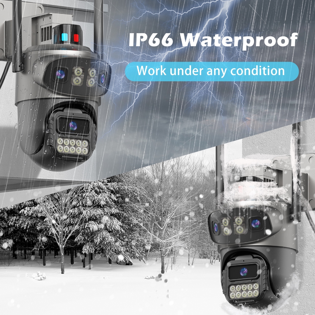 Guoanvision Cctv Kamera 12Mp Three Lens Outdoor Camera Waterproof Night Vision 360°