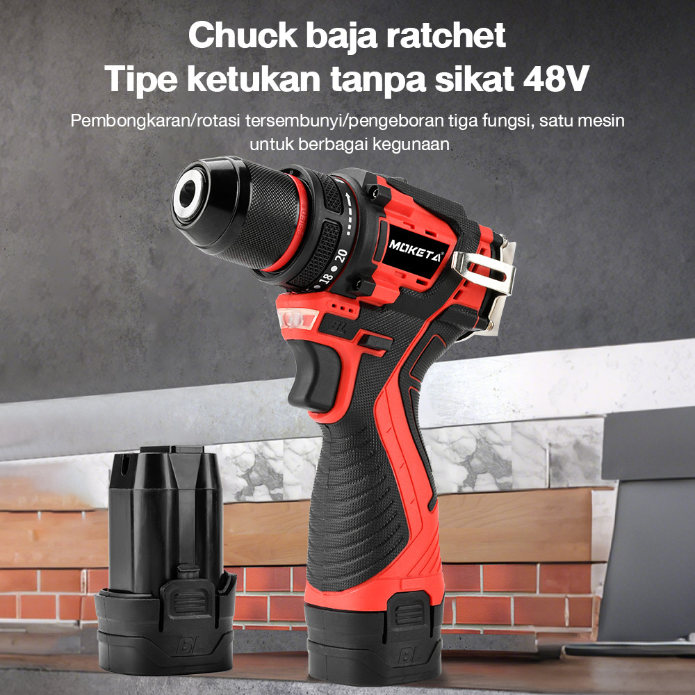 Moketa 48Vf Brushless Cordless Drill 450W Mesin Bor Impact Hand Impact Drill Power Tools