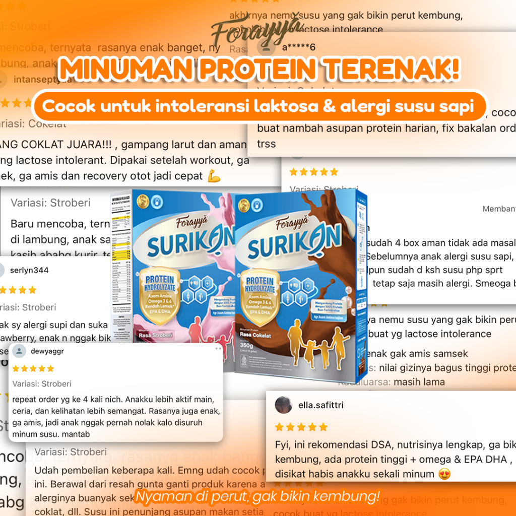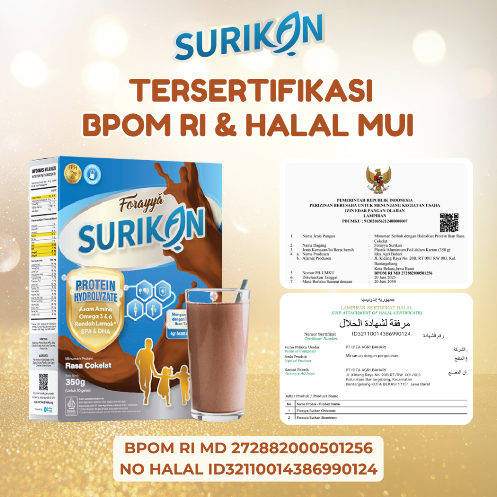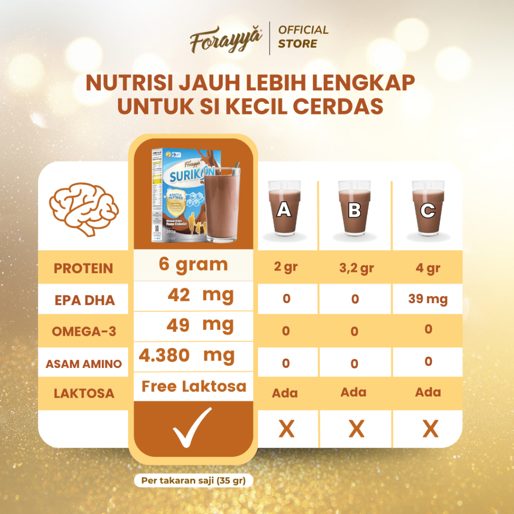 Surikan Cokelat Bebas Laktosa Tinggi Protein 350Gr - Susu Pertumbuhan Anak Lactose Free Omega 3 Epa Dha