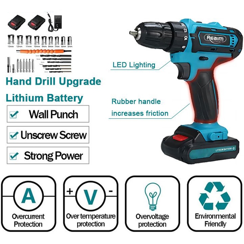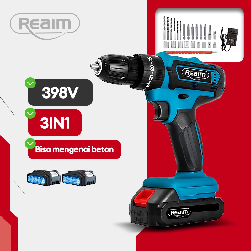 Reaim Mesin Bor Listrik 10Mm Bor Baterai Cordless Bor Tangan Baterai Drill Bor Cas Besi Tembok Beton Kayu