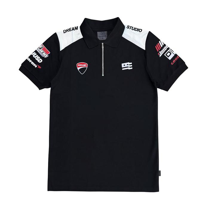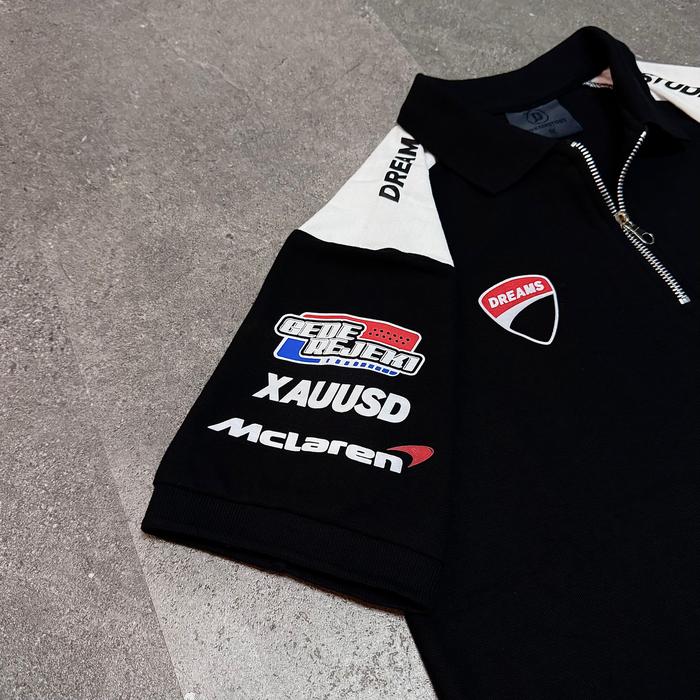 POLO SHIRT DREAMSTORY MANDALICA ZIPPER COTTON LACOS HIGH QUALITY LEMBUT COMFY NYAMAN - BLACK, M