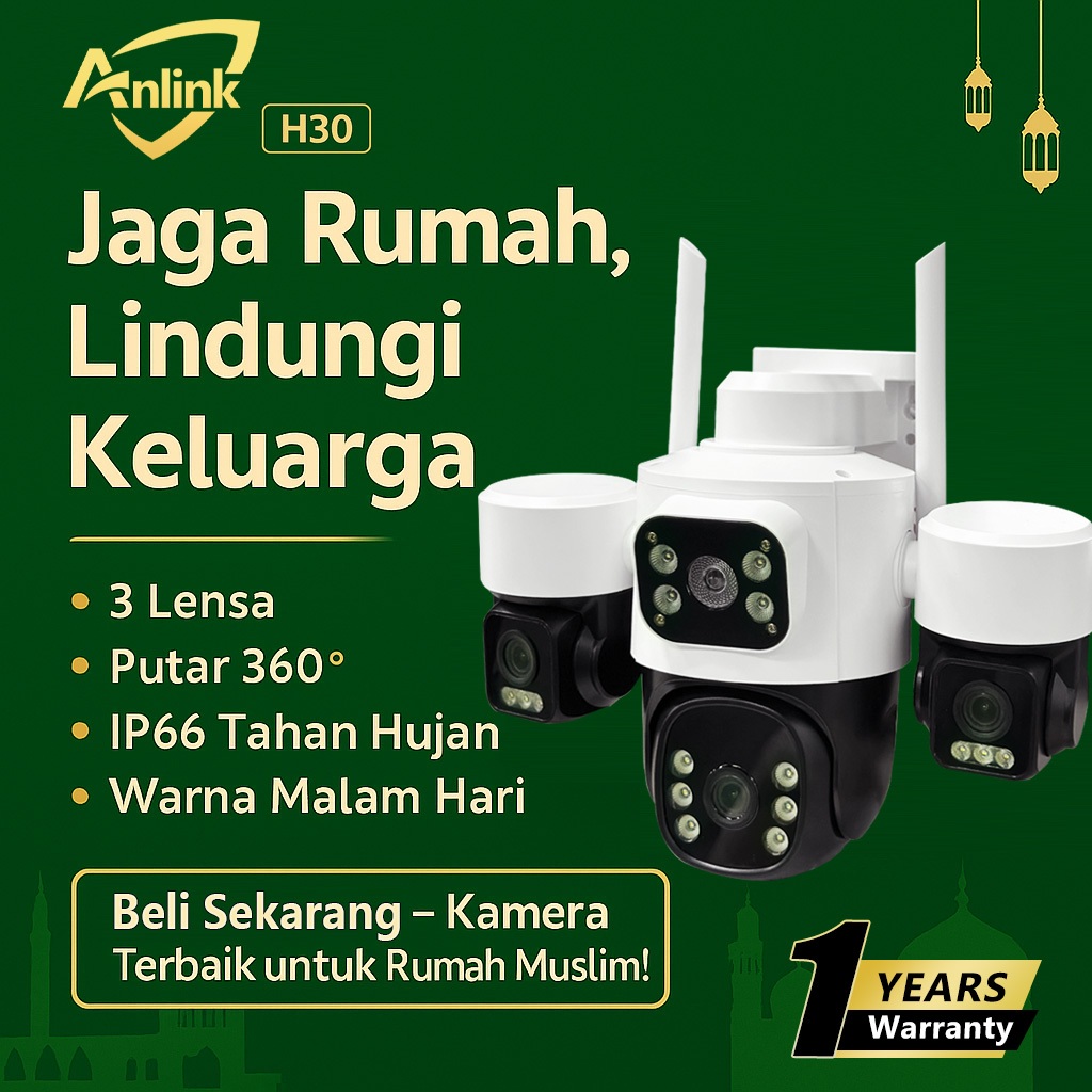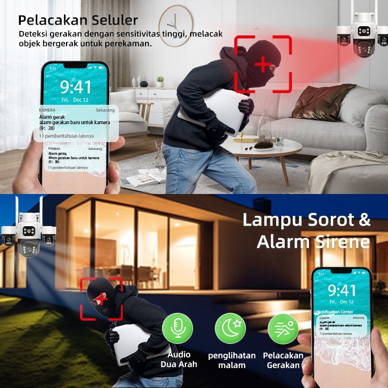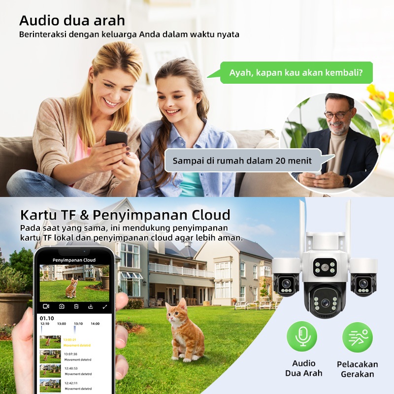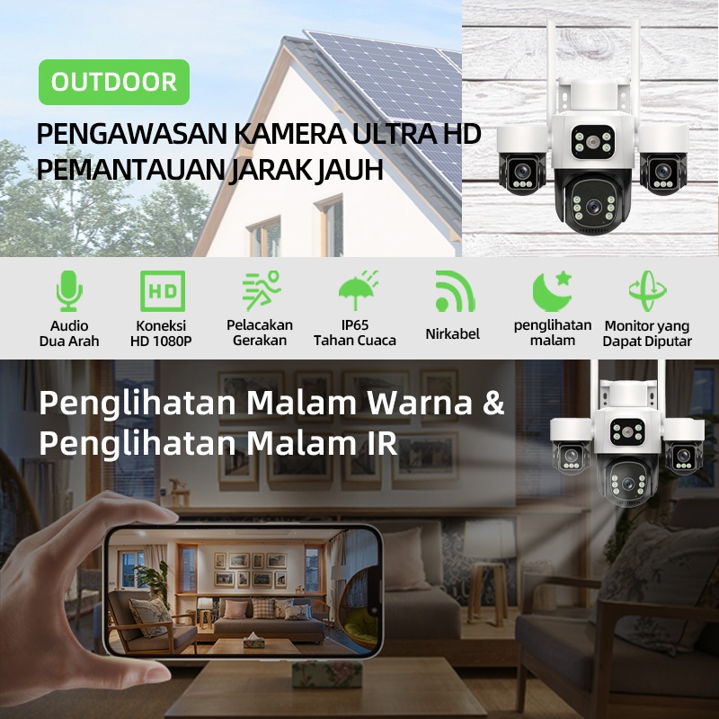 Cctv Wifi Outdoor 3 Lensa Putar 360° Pantau Rumah Hp Malam Jelas Audio Dua Arah Tahan Hujan Garansi