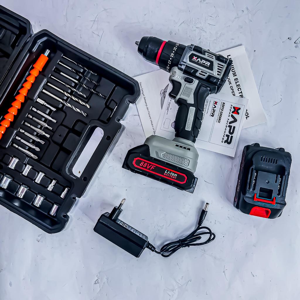 Bor Cordless Apr Japan Terbaru Drill Brushless Type Ap85+ All Varian 10Mm Keyless Auto Lock 2Baterai
