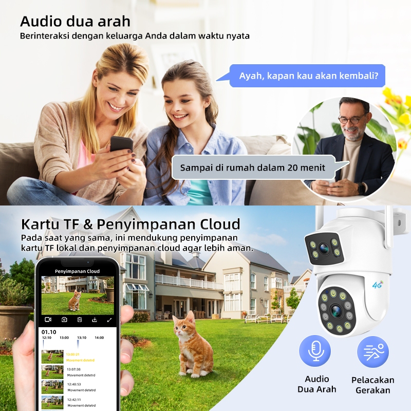 Franwell 4G Cctv Outdoor Dual Lens | 1080P Night Vision | Audio Dua Arah | Gratis Sim | Tahan Hujan