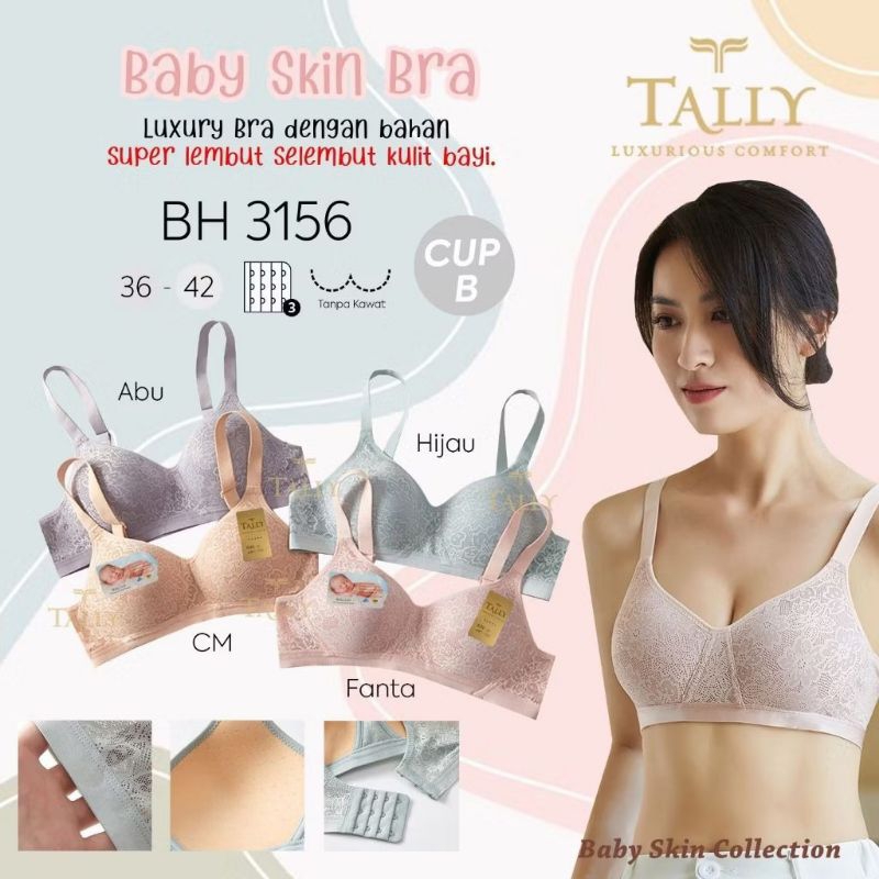 Tally Bra Bh Baby Skin 3156 I Cup B Besar I Tanpa Kawat I Busa Tipis I Size 36 - 42 I Kait 3