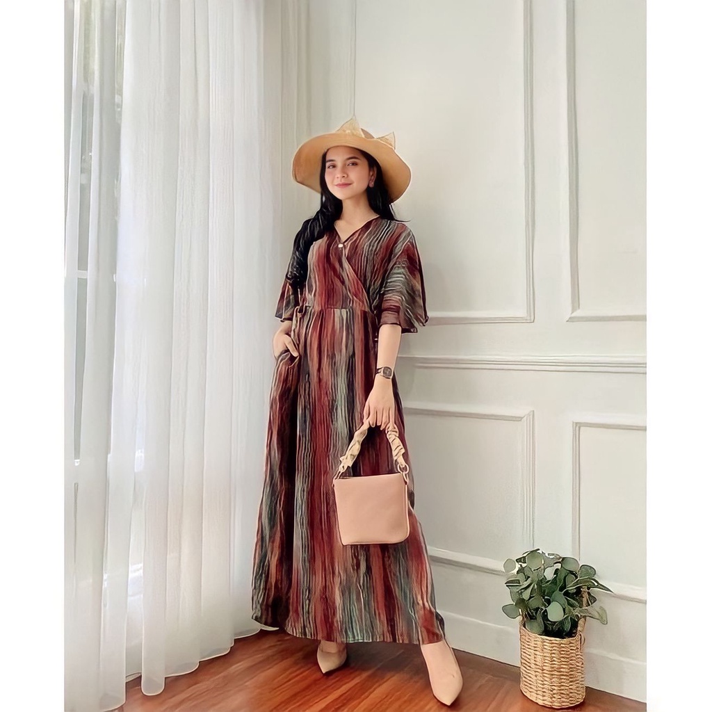 Daster Dress Kimono Busui Kancing Depan Bumil Bahan Rayon Piyama Baju Tidur Wanita Dewasa Remaja Panjang Semata Kaki Len