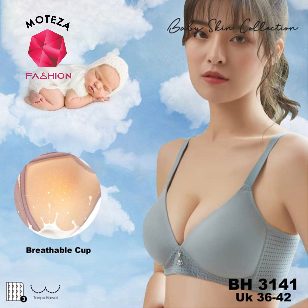 Tally 3141 Bra Bh Wanita Baby Skin | Busa Tipis | Full Cup B - C | Tanpa Kawat | Kait 3 | Size 36 - 42