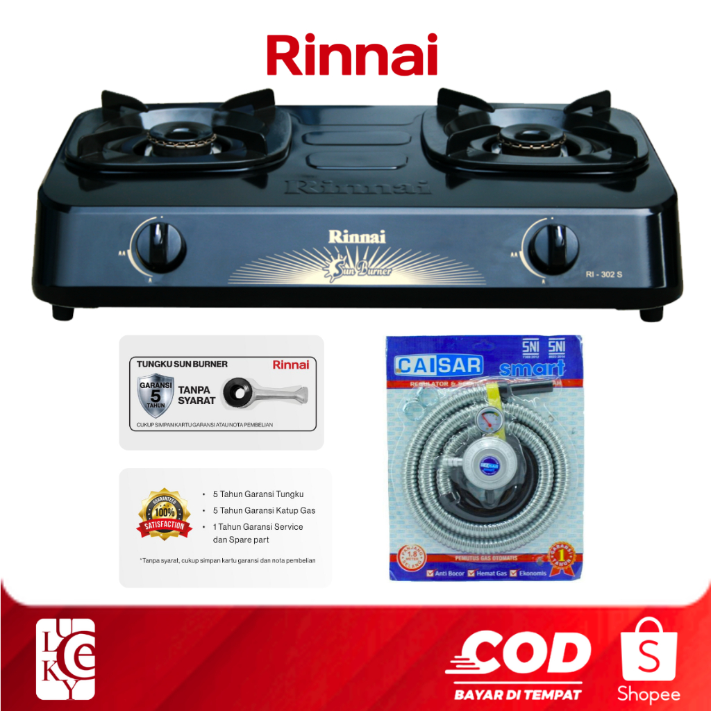 Kompor Gas Rinnai 2 Tungku Ri 202S 302S 522S 522C 522E Plus Selang Regulator