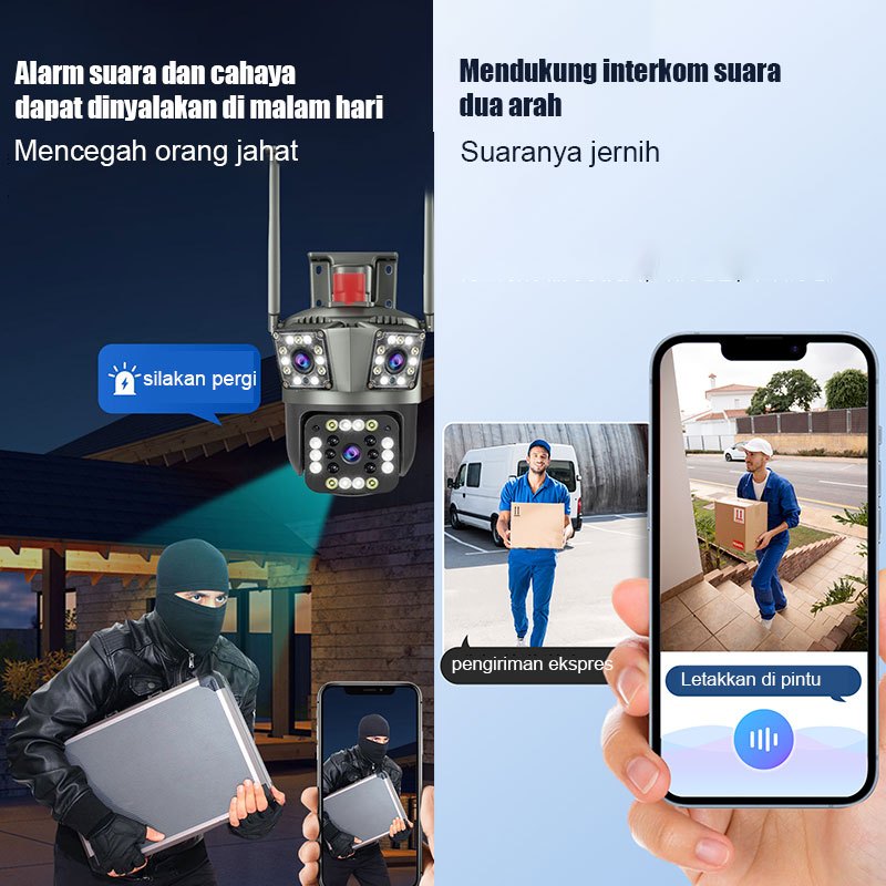 Kamera Cctv V380Pro Icsee Wireless Wifi Alarm Deteksi Ip66 Outdoor Waterproof Three-Lensai 360°Ptz Kamera Cctv Camera