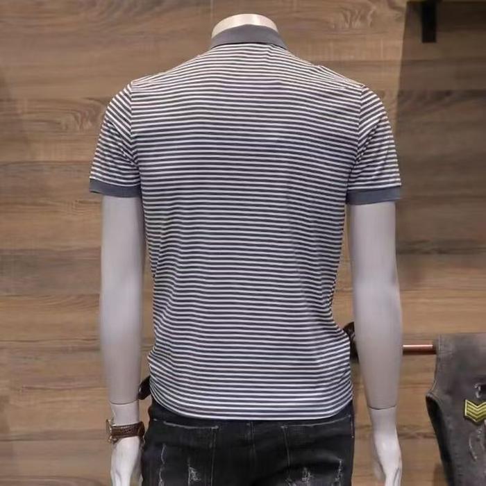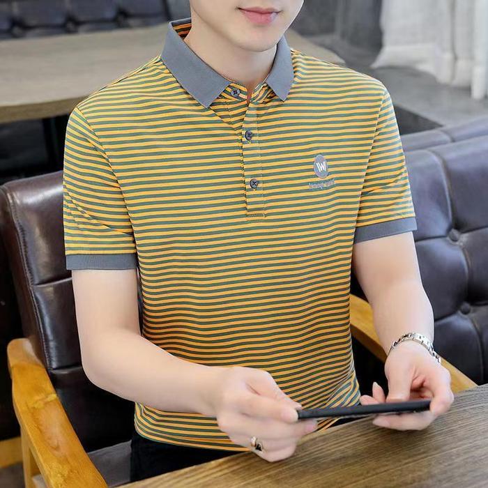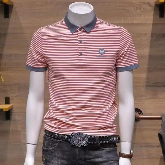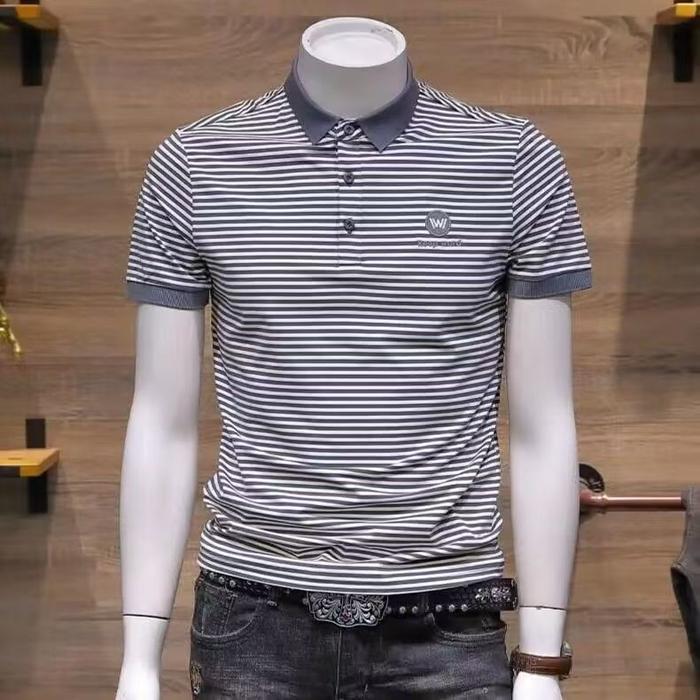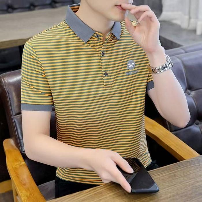W POLO SHIRT KAOS KERAH PRIA GELOMBANG HORIZONTAL HITAM PUTIH BAHAN POLYESTER NYAMAN ELASTIS SIZE M L XL 2XL 3XL GAYA KO