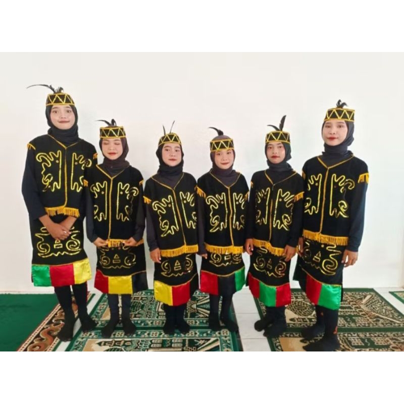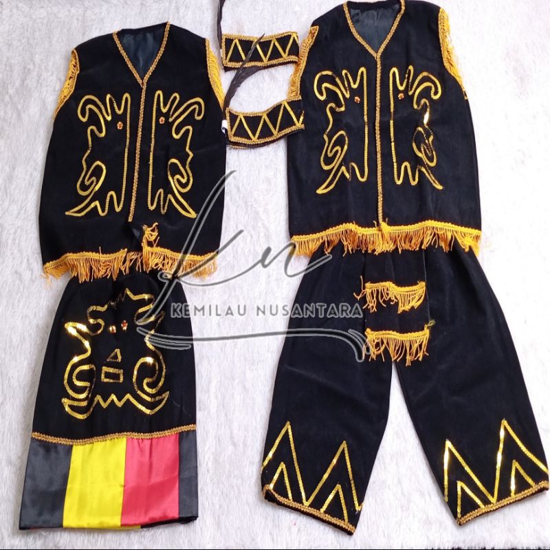 Baju Adat Dayak Anak Dan Dewasa/Baju Karnaval/Baju Bludru Hitam/Baju Bludru Hitam Payet/Baju Adat Kalimantan/Aksesoris T