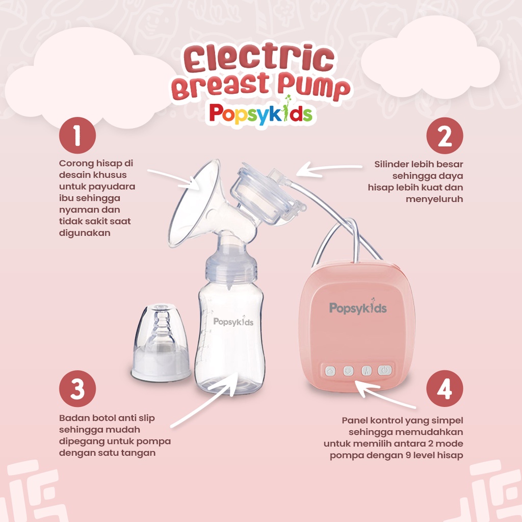 Popsykids Electric Breast Pump Pompa Asi Elektrik - Food Grade