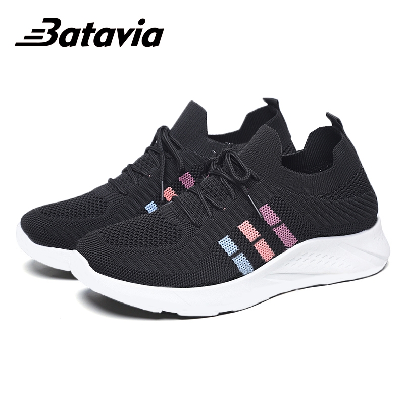 Batavia Sepatu Olahraga Wanita Sepatu Sekolah Wanita Hitam Jogging Kerja Wanita Rajut Wanita N69