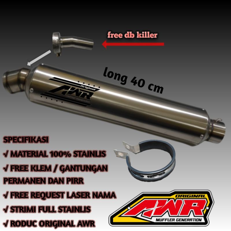 Slincer Knalpot Racing Original Awr Shock 50 Long 30 & 40 Cm Full Bass