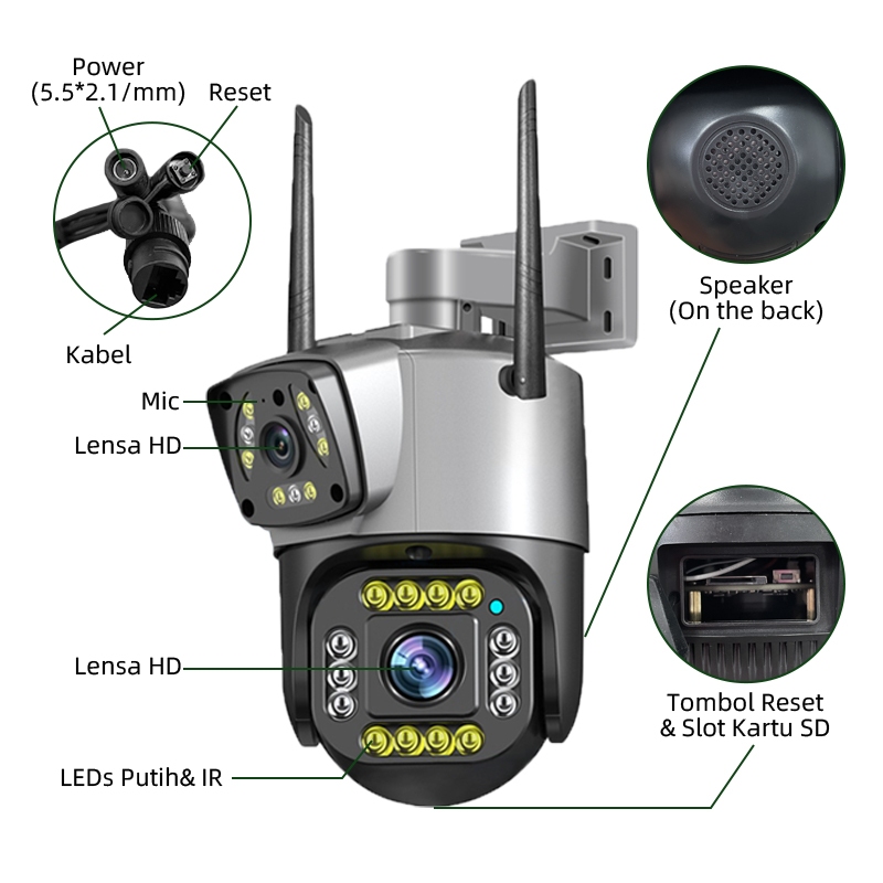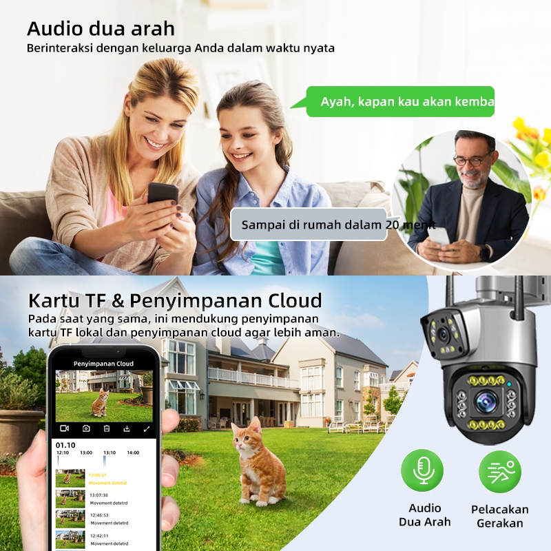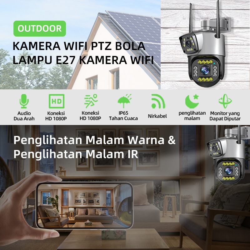 Cctv Wifi Outdoor Dual Lens 1080P Night Vision Audio 2 Arah Deteksi Gerak Tahan Hujan Tanpa Bulanan
