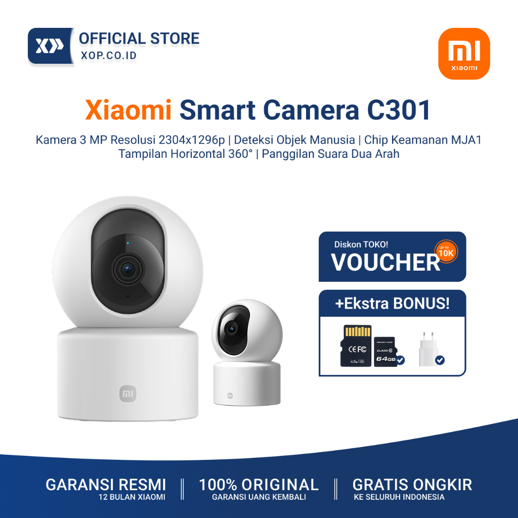 Xiaomi Smart Camera C301 | Kamera Cctv 2K Ultra Hd Dengan 3Mp | Ai Pendeteksi Manusia | Rotasi 360° Dan Vertikal 107° |
