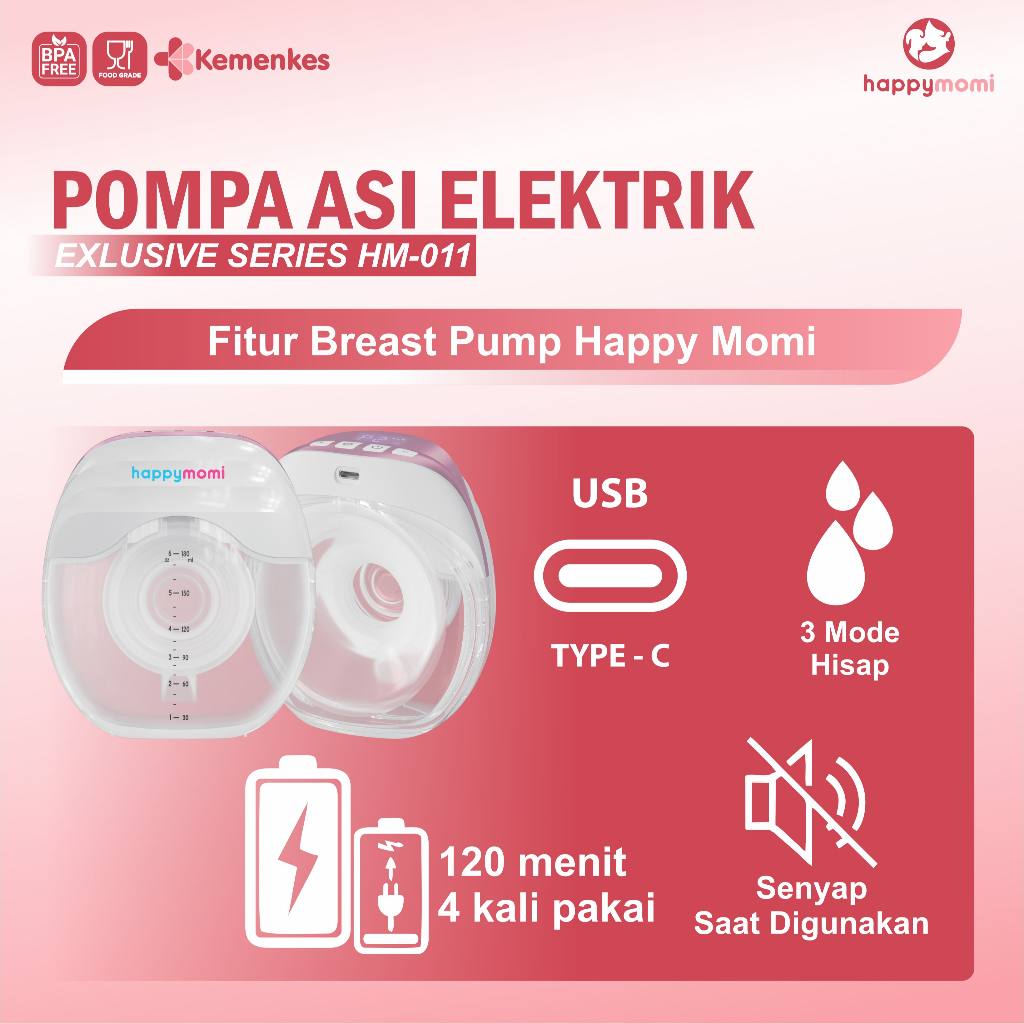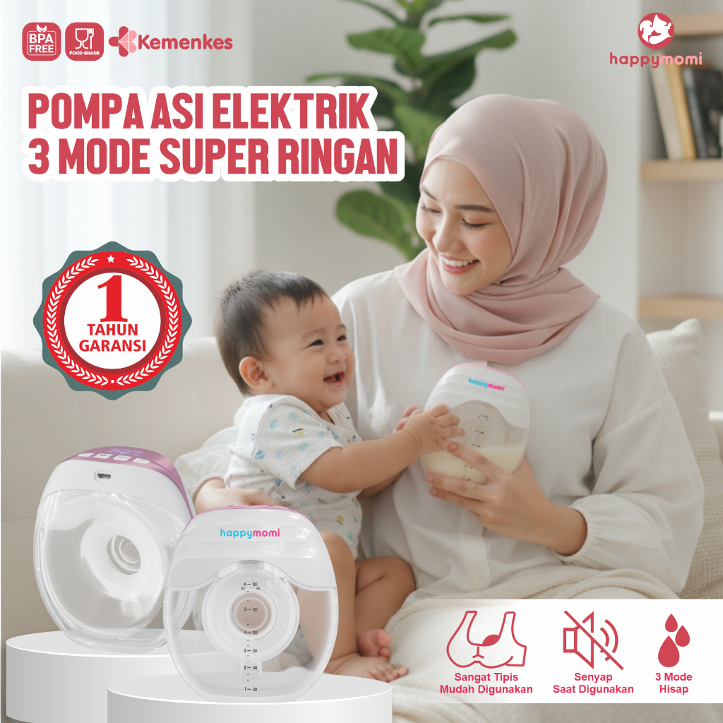 Garansi Resmi 1 Tahun - Happymomi Pompa Asi Elektrik Breast Pump New Generasi Paling Ringan 3 Mode