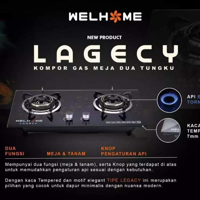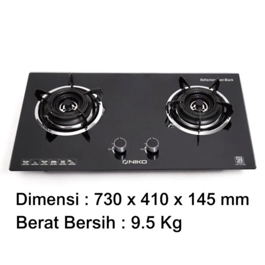 Kompor Gas Tanam 2 Tungku Kaca - Niko Reflection Next Black