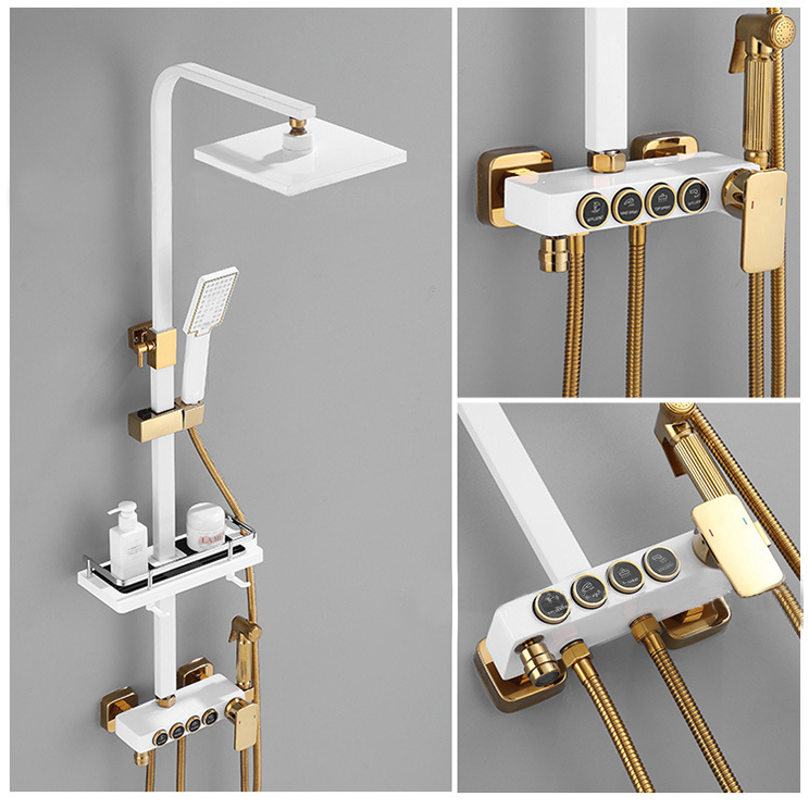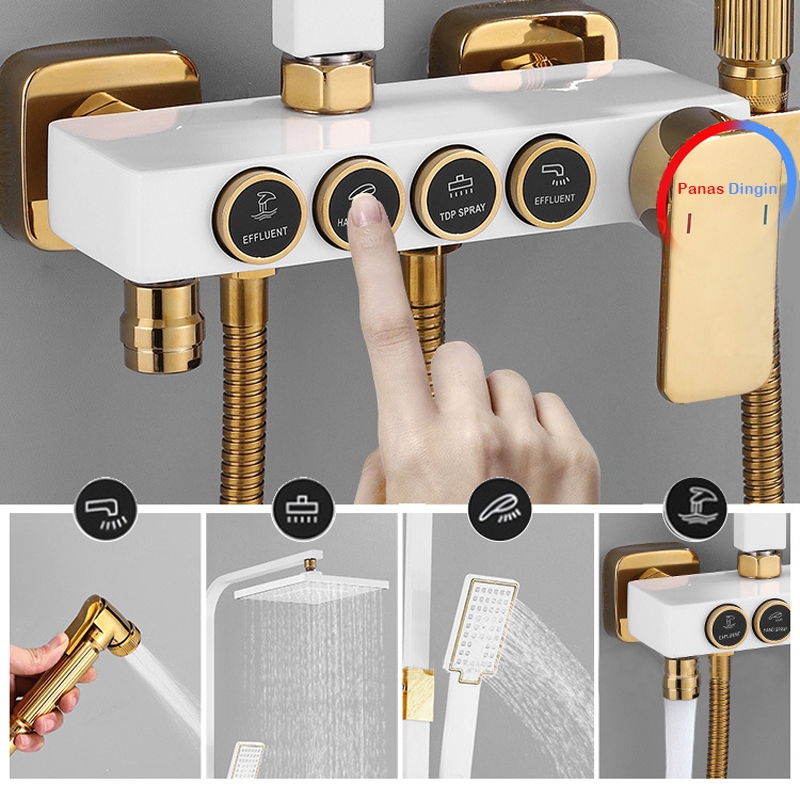 ⚡Garansi 3 Tahun⚡4 Dalam 1 Set Shower Kamar Mandi Panas-Dingin Persegi Sprayer Dengan Faucet Set Shower Full Kuningan P