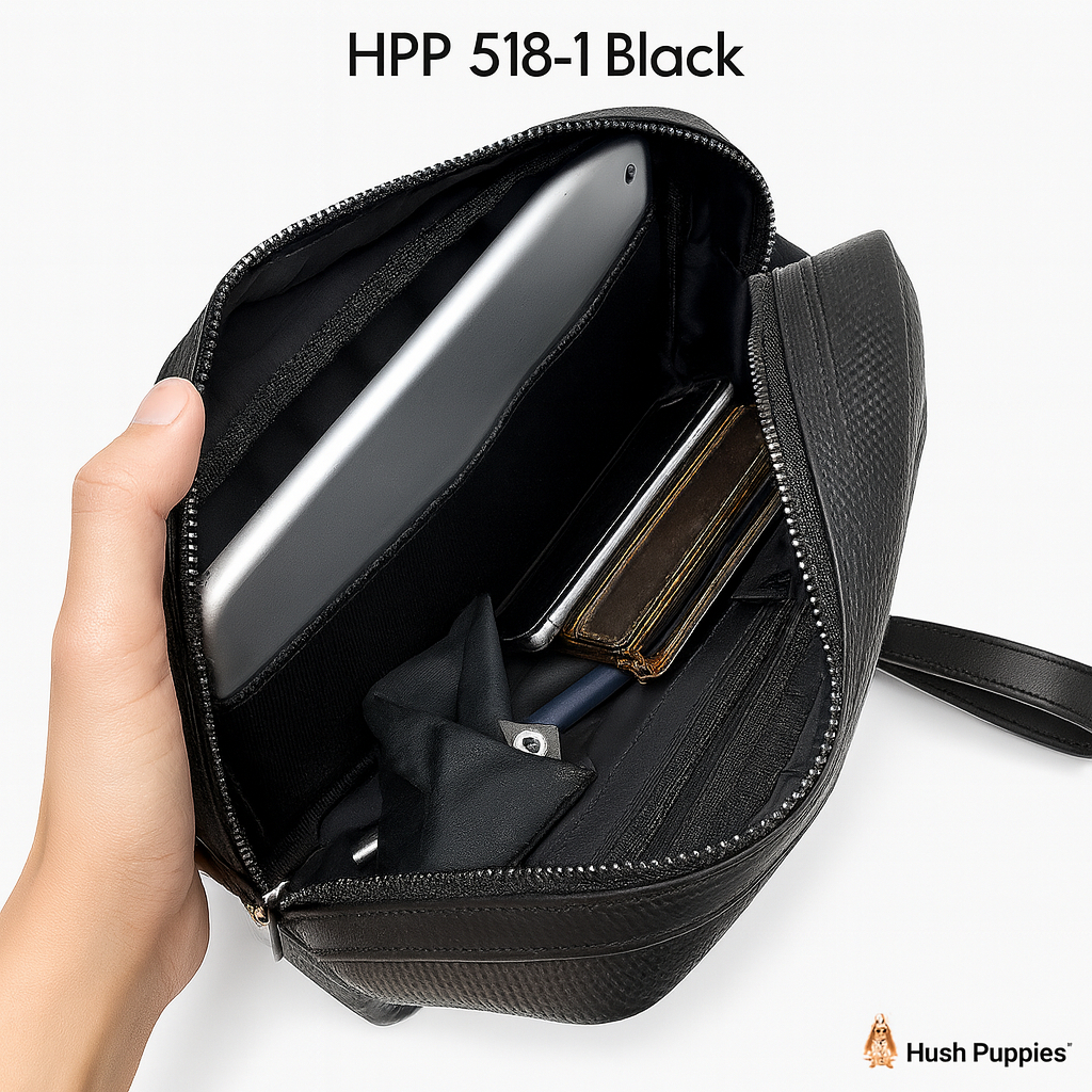 Tas Handbag Pria Hush Puppies 518 Hitam Premium | Tas Tangan Cowok Waterproof Stylish & Kuat