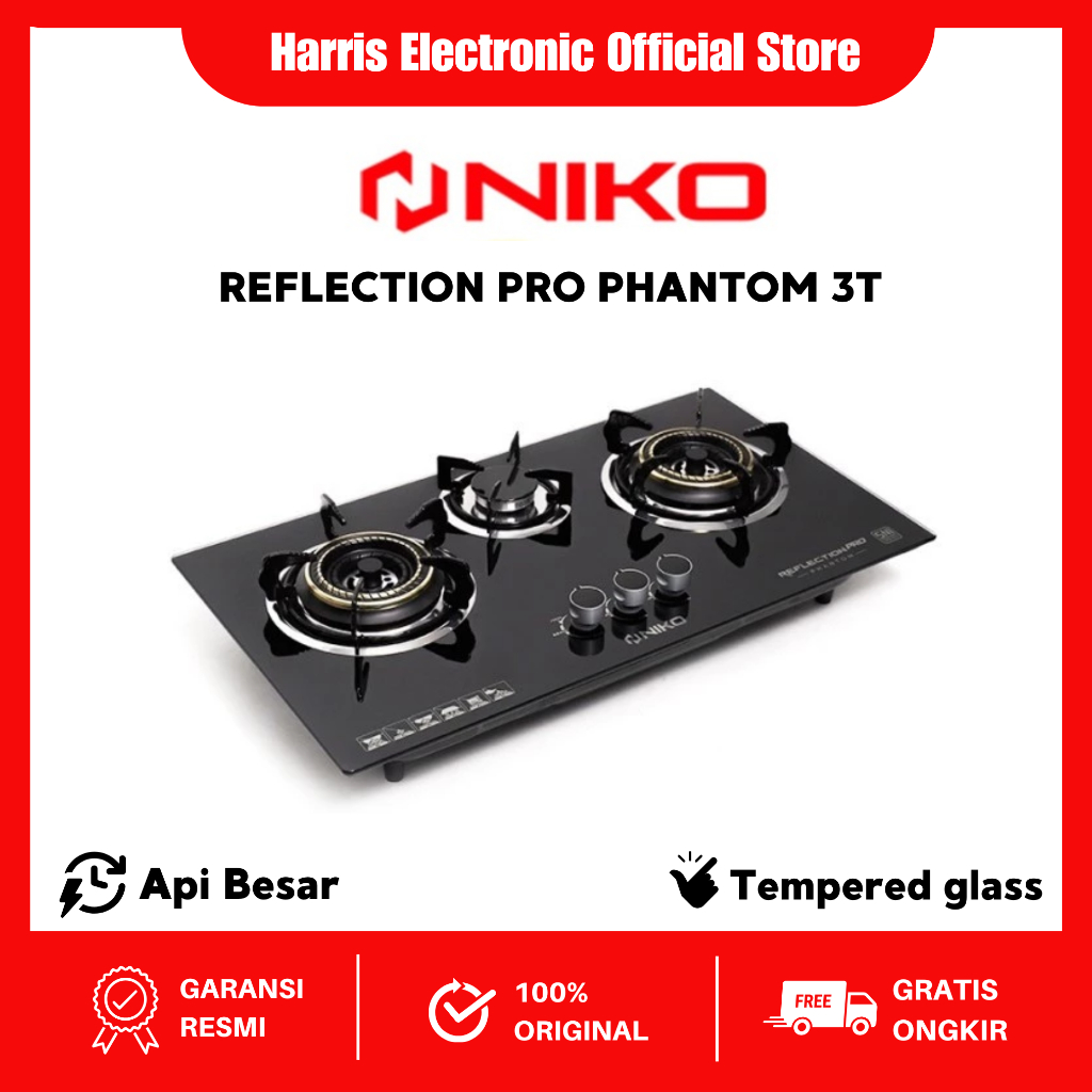 Niko Reflection Pro Phantom Kompor Gas Tanam 3 Tungku Mewah / Kompor Tanam Kaca 3 Tungku Original Termurah
