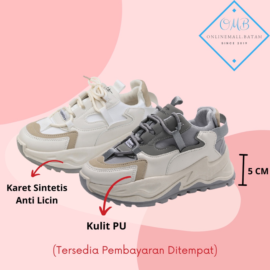Sepatu Sneakers Wanita Premium Quality Beige Abu 223 Onlinemall