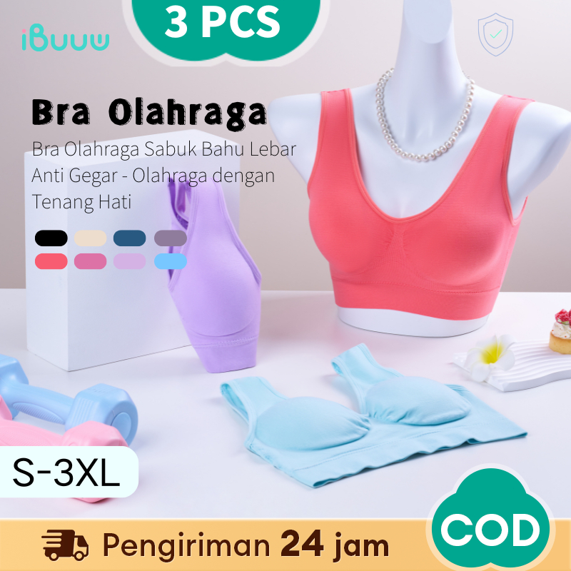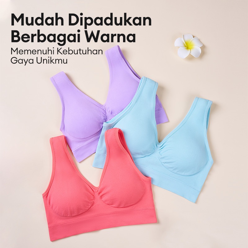 3Pcs Jumbo Bra Olahraga Busa Sport Bh Tanpa Kawat Wanita Push Up Sport Bra 811