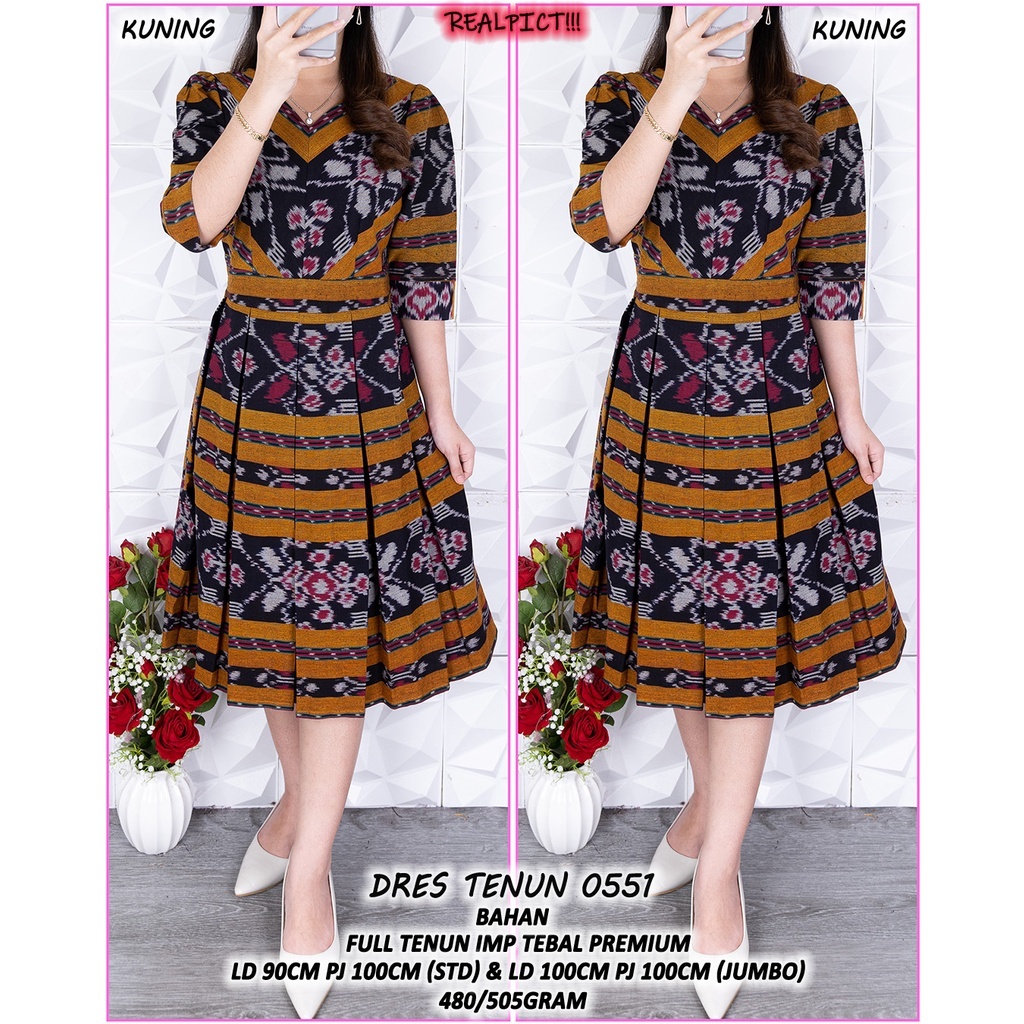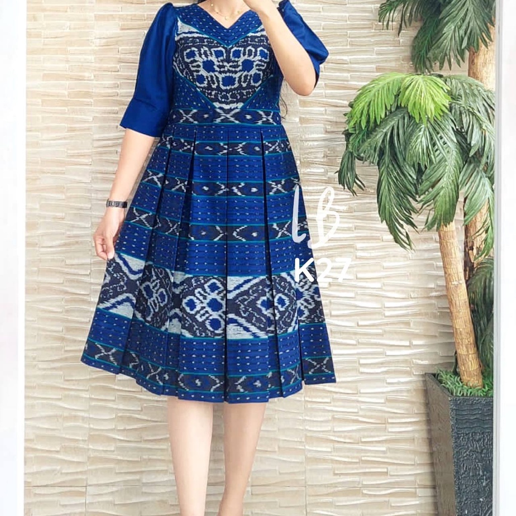 Dress Wiru Tenun Rampel, Baju Pesta Dress Wanita, Lengan Pendek