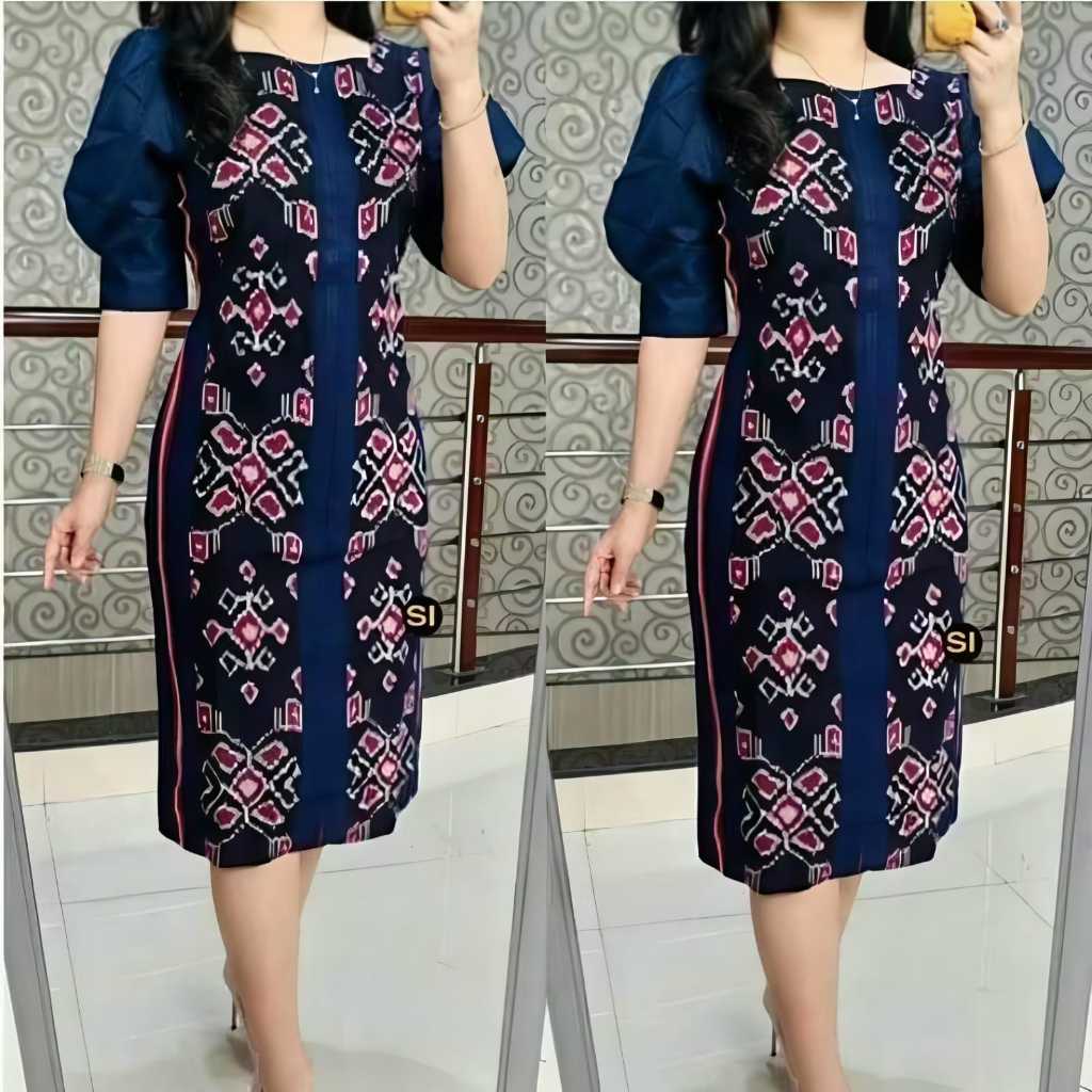 Dress Tenun Lengan Kombinasi - Baju Ethnik Tunik Tenun - Baju Natal - Couple Tenun
