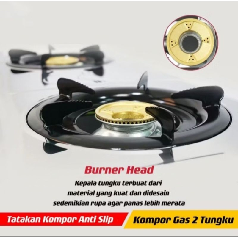 Kompor Gas 2 Tungku Anti Karat / Omicko Kompor Stainless 2 Tungku Anti Karat - Kompor 2 Tungku Anti Karat Sni