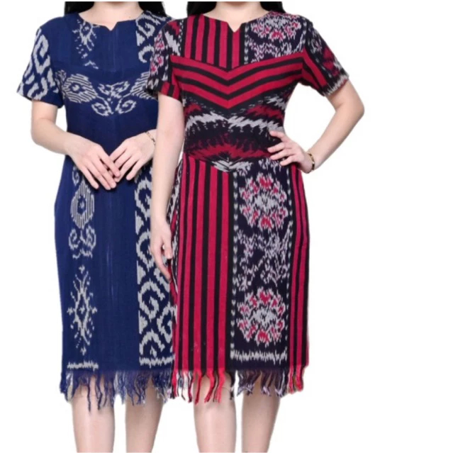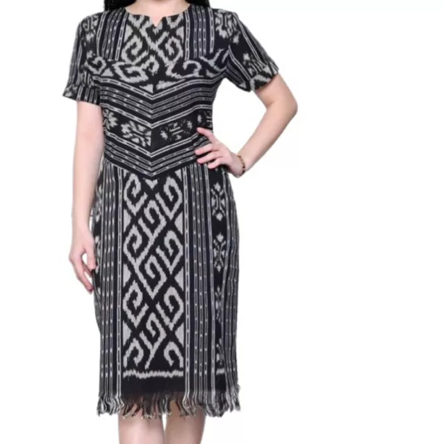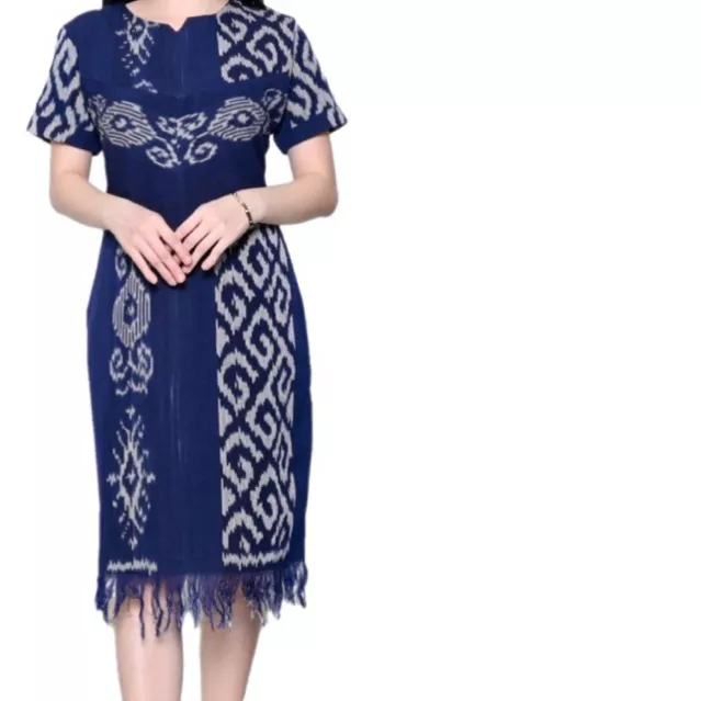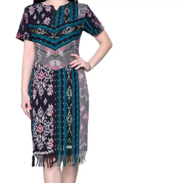 Dress Tenun Mode Slim Rumbai Kombinasi Obibelt Lengan Pendek