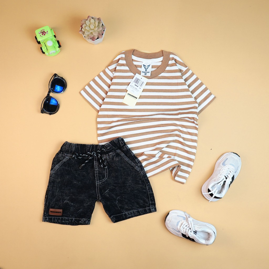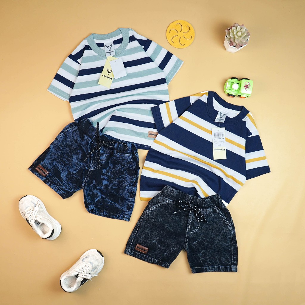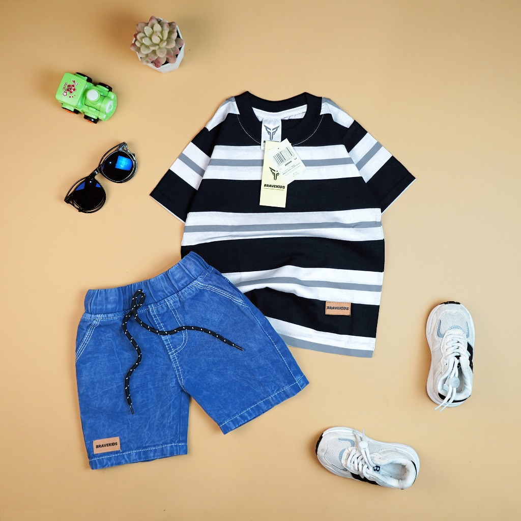 Bravekids - Broadstripe Setelan Anak Kaos Salur Cotton Combed 24S Dan Celana Denim Fashion