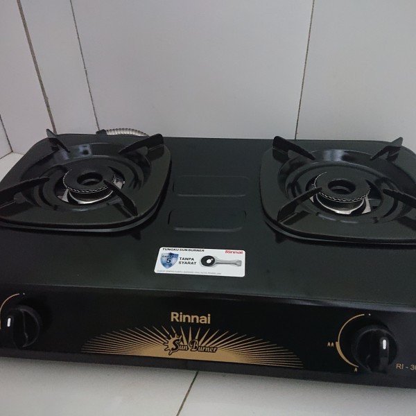 Kompor Gas 2 Tungku Rinnai Ri-302S Sun Burner Api Biru Hemat Gas Garansi Resmi