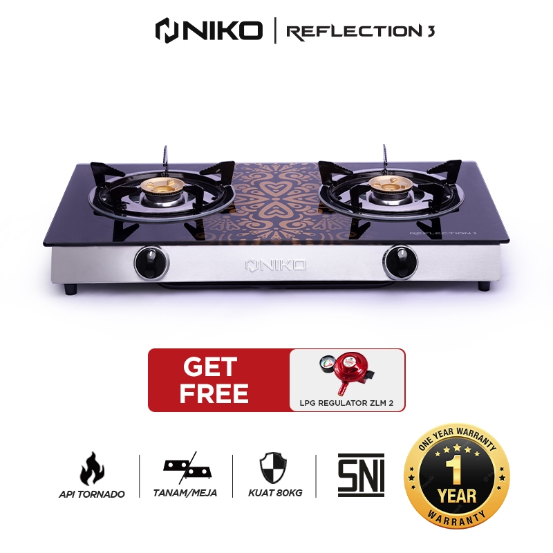 Kompor Gas 2 Tungku Kaca - Niko Reflection [Bundling] L Garansi Resmi