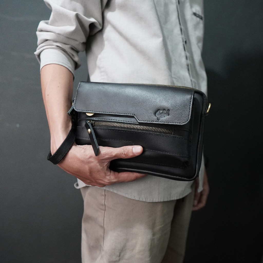 Caliandravieri Hand Bag Pria Kulit Asli Tas Slempang Cvr Phiu Free Soulder Strap Leather