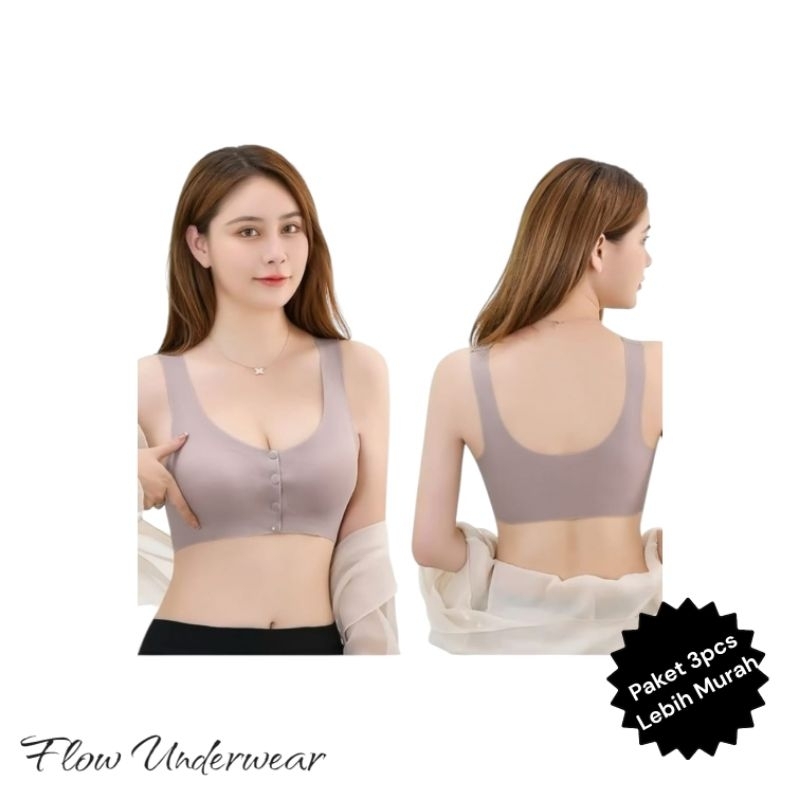Paket Hemat 3Pcs Bh Polini 8815 Sport Fashion Bra Pakaian Dalam Wanita Bra Seamless Ice Silk Kancing Depan