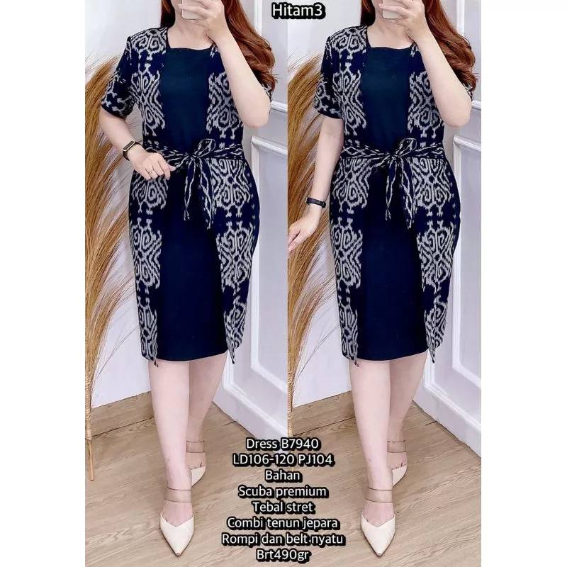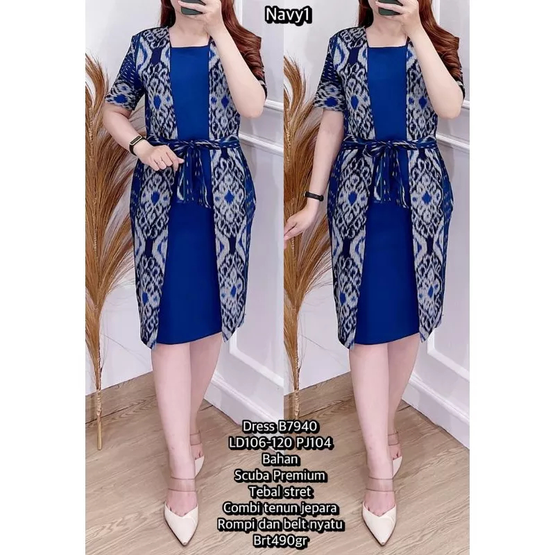 Dress Tenun Semi Kutubaru Mode Slim Baju Pesta Lengan Pendek