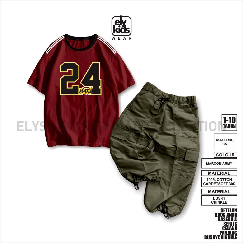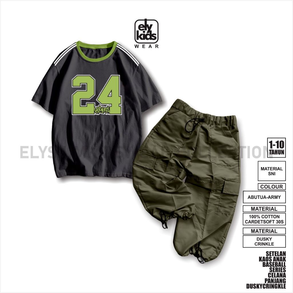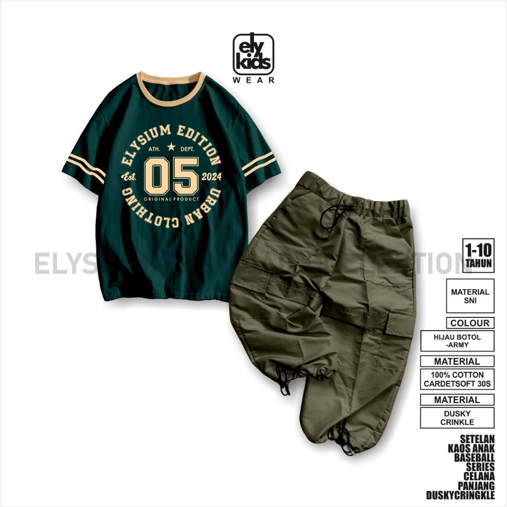 Elykidswear Setelan Kaos Anak Laki Celana Cargoo Bahan Parasut Duskycringkle Usia 1-10 Tahun