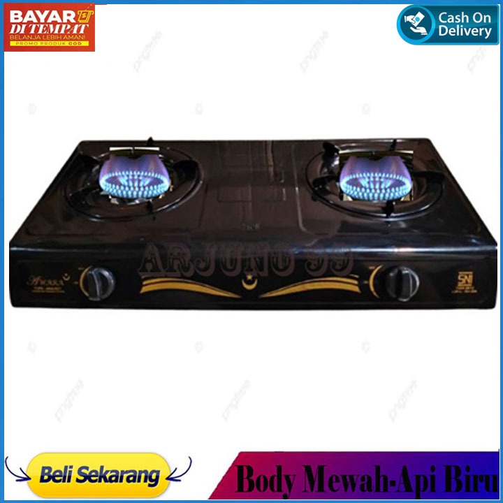 Kompor Gas 2 Tungku Awara Teflon Warna Hitam Sni Terbaru / Kompor Dengan Selang Regulator Paket Mantap Terlaris