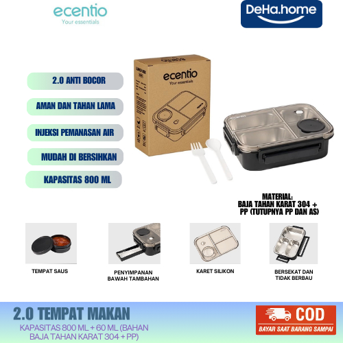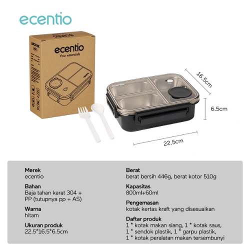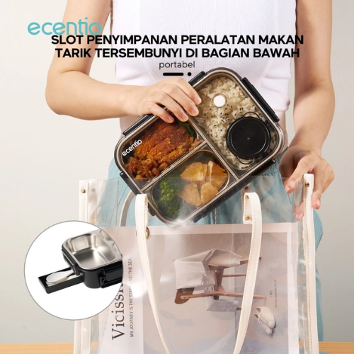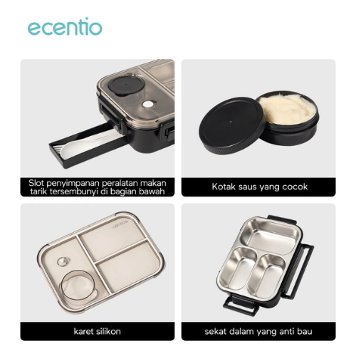 Ecentio Tempat Makan Bekal 800ml Bahan Tahan Karat 304
