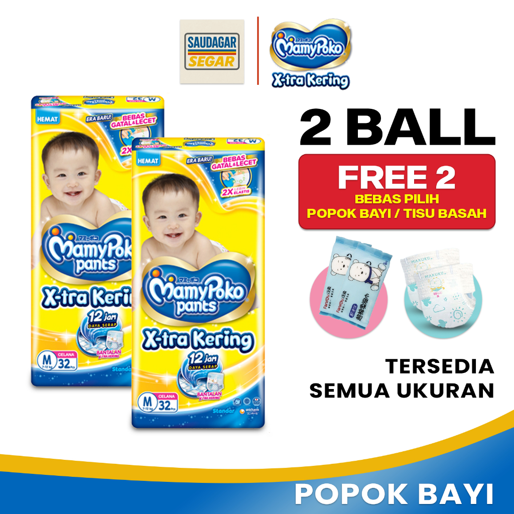 2 Ball Gratis 2 Mamypoko Extra Kering Popok Celana & Perekat All Varian Diaper Pants