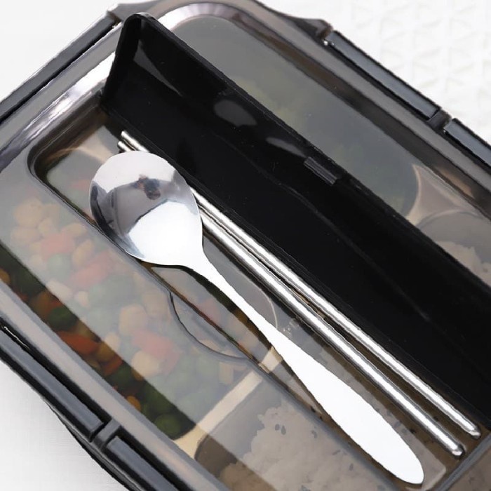 Kotak Makan Stainless Bento Lunch Box 1000ml 3 Grid + Sendok & Sumpit