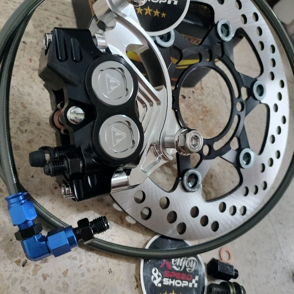 Paket Kaliper 4P Formula Tracktion Plus Disc 220 Floating Plus Breket Cnc Mio Smile / Mio Soul Karbu / Xeon