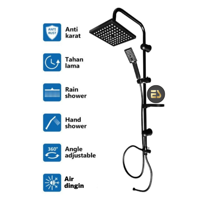 Es Set Shower Kamar Mandi Rain Shower + Keran Cabang Panas / Dingin - Paket Lengkap Shower Kotak/Bulat