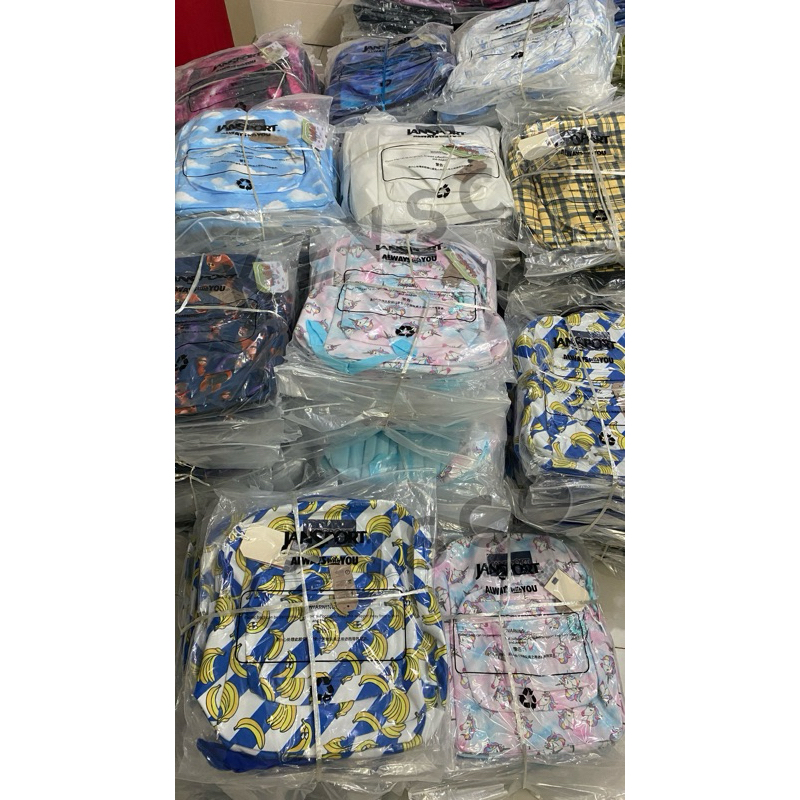 Js Jan Sport Motif Backpack - Tas Ransel Superbreak Large Banana Awan Blue Sky Pria Wanita Back To School